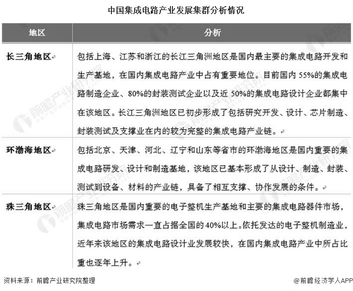 中国集成电路产业集群化分布进一步显现,已初步形成以长三角、环渤海、珠三角三大核心区域聚集发展的产业空间格局。